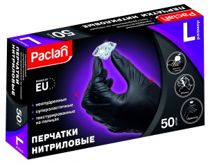 Перчатки нитриловые черные 50шт L 1/20 Paclan