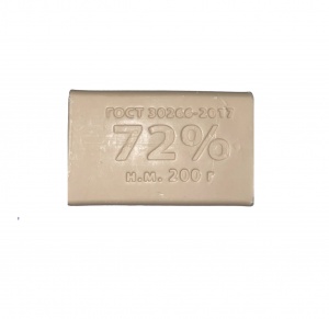 Хозяйственное мыло с содержанием жирных кислот не более 72%. Обладает отличными моющими и дезинфицирующими свойствами. Применимо для санитарно-гигиенических целей и стирки изделий из всех типов тканей. Изготовлено из натуральных жиров и масел.