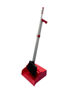 Совок контейнер и щетка на длинной ручкой красный 1/1